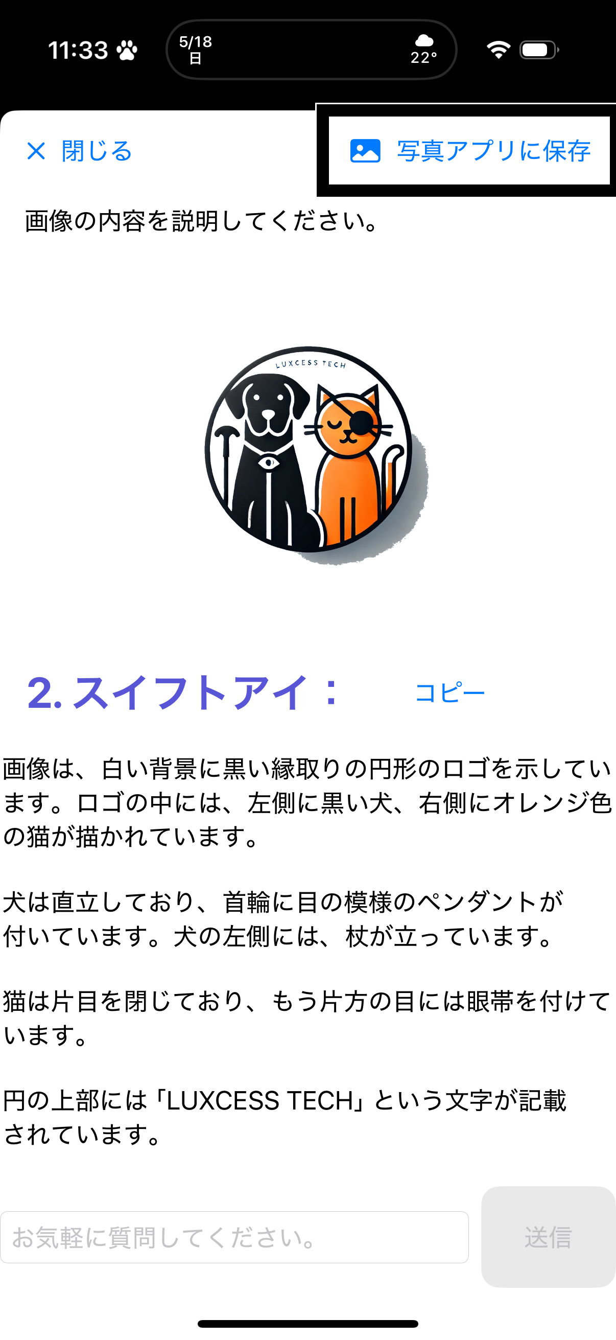 - ・AI(ChatGPT)により撮影された写真や共有された画像の内容を説明する